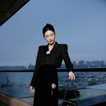 江疏影新造型来袭,身穿黑西装展现优雅女人味