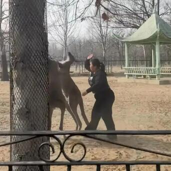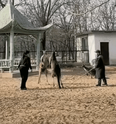 袋鼠打架员工用铁锹劝架被停职,遇到这种情况该怎么劝,跟袋鼠讲道理吗?