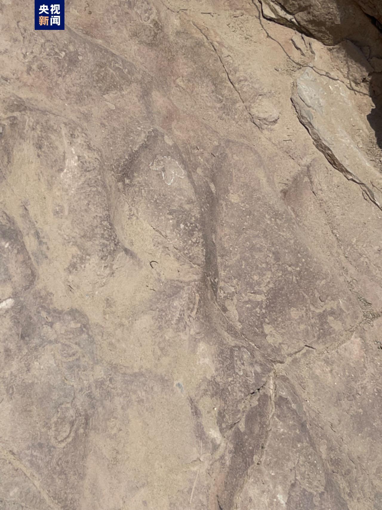 受近期持续降水影响,恐龙博物馆工作人员在临夏世界地质公园内一处剥落的岩体表面,发现了一组五枚恐龙足迹化石,单枚足迹长度大约一至三厘米。